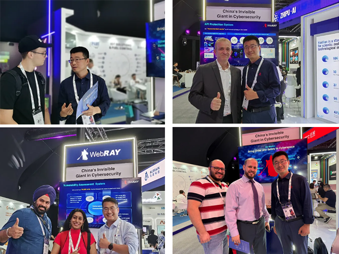 盛邦安全的精彩展示吸引了众多来自全球的跨行业嘉宾驻足,涵盖了智能制造、智慧城市、金融科技、新能源等多个高增长领域,获得了众多青睐,不仅对盛邦的前沿技术表示高度认可,更对其能够针对不同行业场景需求提供定制化解决方案的能力给予了高度评价。