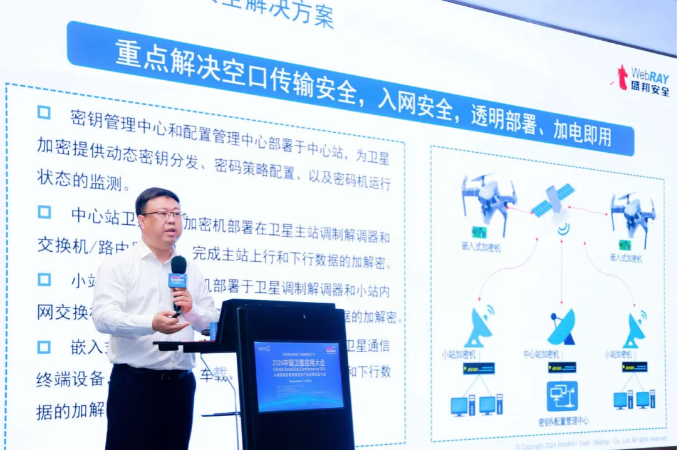 作为卫星互联网安全领域的唯一参会行业代表,盛邦安全技术副总裁张雷从网络安全视角出发,分享卫星互联网的安全技术与解决方案。随着低空经济的蓬勃兴起,卫星互联网安全问题日益凸显,亟需行业关注与解决。作为新一代网安行业新质生产力的先锋代表,盛邦安全在全行业率先布局卫星互联网安全,早在2021年便开始相关技术研发并且申请多项专利。2024年,公司战略升级,将卫星互联网安全作为新业务方向,高调进军该领域,依托网络安全与卫星通信安全的双重优势,推出创新技术产品和体系化解决方案,并探索卫星互联网安全在物联网、低空经济、海洋海事、应急救援、智慧农业等场景的应用与落地。