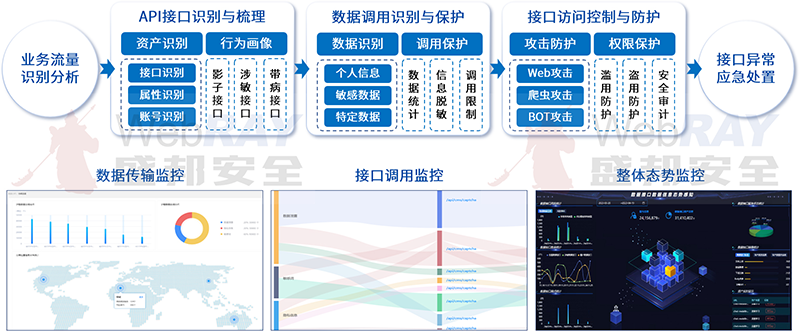 基于流量变化和行为特点等角度进行建模分析,梳理API访问的基线并进行动态跟踪,对未授权访问、未知请求、非法调用和异常高频请求等行为进行识别判断,并利用反向校验、访问限制和白名单等方式进行访问控制。