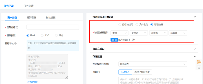 简化了任务下发流程,通过智能化全网覆盖,确保了资产探测的全面性与准确性。
