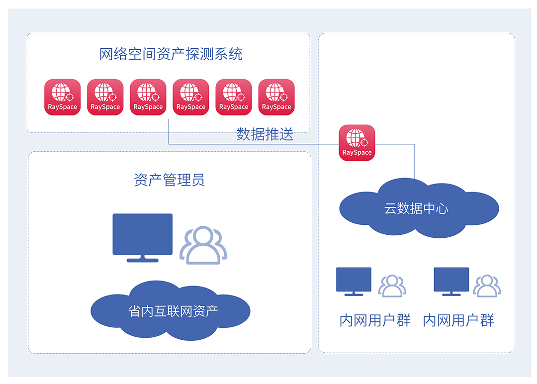 - 互联网资产的全面测绘: 实现对资产的全面测绘,可将测绘结果传输至大数据平台,为上级部门的检测、预警、溯源工作提供基础数据支撑。