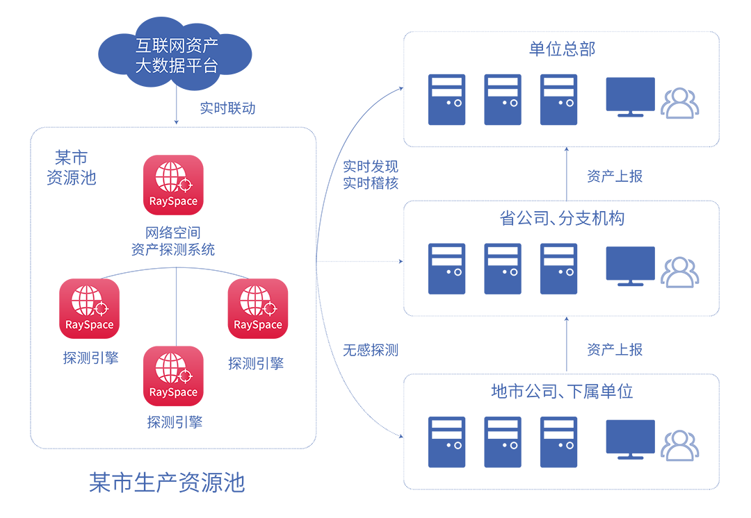 某通信公司地市公司、下属单位持续上报自身资产台账清单,由省分公司及分支机构汇总上报至某铁塔公司集团,借助网络空间资产探测系统资产数据持续进行实时稽查。